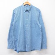 XL★古着 長袖 シャツ メンズ 大きいサイズ ロング丈 コットン ボタンダウン 紺他 チェック
