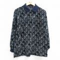 L★古着 長袖 ポロ シャツ メンズ 90年代 90s ロング丈 鹿の子 濃紺他 ストライプ
