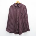 XL★古着 長袖 シャツ メンズ 大きいサイズ コットン ボタンダウン 赤他 ストライプ
