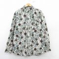 XL★古着 長袖 シャツ メンズ 鳥 ネイティブ柄 ラグ柄 大きいサイズ ロング丈 コットン ボタンダウン 生成り他 25mar06 中古 トップス