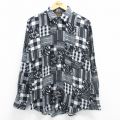 L★古着 長袖 シャツ メンズ シカ 総柄 ボタンダウン 黒他