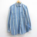 XL★古着 長袖 シャツ メンズ 00年代 00s 大きいサイズ ボタンダウン 薄紺他 ストライプ