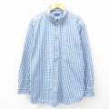 【商品名】 XL★古着 長袖 シャツ メンズ 大きいサイズ ロング丈 コットン ボタンダウン 紺他 チェック