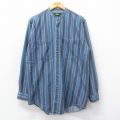 XL★古着 長袖 シャツ メンズ 90年代 90s 大きいサイズ コットン ノーカラー 白他 ストライプ