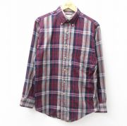 M★古着 長袖 シャツ メンズ 80年代 80s ボタンダウン エンジ他 チェック