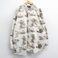 XL★古着 長袖 シャツ メンズ 00年代 00s 魚 総柄 大きいサイズ コットン ボタンダウン メベージュ系他
