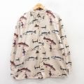 【商品名】 XL★古着 長袖 シャツ メンズ 00年代 00s 魚 コットン ボタンダウン ベージュ他【spe】