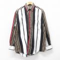 XL★古着 長袖 シャツ メンズ 90年代 90s コットン ボタンダウン 白他 ストライプ