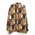L★古着 シアーズ 長袖 シャツ メンズ 80年代 80s 総柄 ロング丈 グレー他