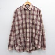 L★古着 長袖 シャツ メンズ 90年代 90s ロング丈 ボタンダウン 赤他 チェック