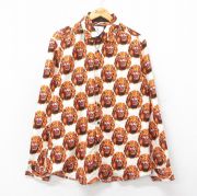L★古着 長袖 シャツ メンズ ライオン 総柄 白他