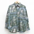 L★古着 長袖 シャツ メンズ レインフォレスト 鳥 コットン ボタンダウン 緑系