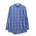 L★古着 長袖 シャツ メンズ ロング丈 ボタンダウン 紺他 ネイビー チェック 25mar22 中古 トップス