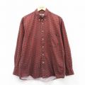 【商品名】 L★古着 長袖 シャツ メンズ 90年代 90s 総柄 コットン ボタンダウン 赤系他