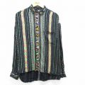 【商品名】 XL★古着 長袖 シャツ メンズ 大きいサイズ レーヨン 黒他 ストライプ