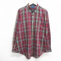 XL★古着 バンヒューセン 長袖 シャツ メンズ ボタンダウン エンジ他 チェック