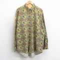 XL★古着 長袖 シャツ メンズ ペイズリー柄 コットン 緑