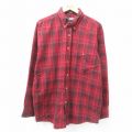 XL★古着 長袖 シャツ メンズ コットン ボタンダウン 赤 レッド チェック 25apr14 中古 トップス