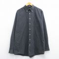 XL★古着 長袖 シャツ メンズ 大きいサイズ コットン ボタンダウン 黒 ストライプ