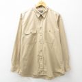XL★古着 長袖 シャツ メンズ 工具 大きいサイズ コットン ボタンダウン ベージュ