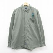 XL★古着 長袖 シャツ メンズ PARKS 大きいサイズ コットン ボタンダウン 濃緑