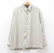 XL★古着 長袖 シャツ メンズ 90年代 90s 総柄 レーヨン ベージュ他