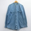 【商品名】 XL★古着 長袖 シャツ メンズ 00年代 00s コットン ノーカラー 薄紺 デニム【spe】