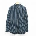XL★古着 長袖 シャツ メンズ 大きいサイズ 濃緑他 ストライプ