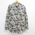 XL★古着 h.i.s 長袖 シャツ メンズ 90年代 90s 総柄 大きいサイズ コットン USA製 グレー他