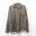 【商品名】 L★古着 長袖 シャツ メンズ 00年代 00s 鳥 総柄 シルク 開襟 オープンカラー 茶他