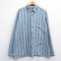 XL★古着 長袖 シャツ メンズ 00年代 00s コットン ボタンダウン 緑他 ストライプ