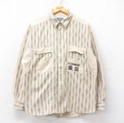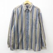 XL★古着 長袖 シャツ メンズ 大きいサイズ コットン ボタンダウン ベージュ他 ストライプ