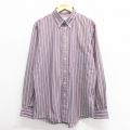 L★古着 長袖 シャツ メンズ 90年代 90s コットン ボタンダウン 白他 ストライプ