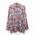 L★古着 長袖 シャツ メンズ 90年代 90s 総柄 コットン ボタンダウン 赤系他