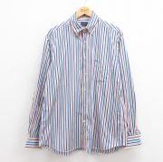 L★古着 長袖 シャツ メンズ コットン ボタンダウン 青他 ストライプ