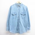 XL★古着 長袖 シャツ メンズ 大きいサイズ コットン ボタンダウン 紺 デニム
