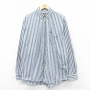 XL★古着 長袖 シャツ メンズ 00年代 00s 大きいサイズ コットン ボタンダウン 紺他 ストライプ