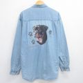 【商品名】 XL★古着 長袖 シャツ メンズ 犬 ロング丈 コットン ボタンダウン 紺 デニム【spe】