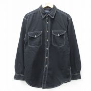 L★古着 ベーシックエディションズ 長袖 シャツ メンズ 90年代 90s ロング丈 コットン 黒