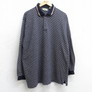 L★古着 長袖 ポロ シャツ メンズ 90年代 90s 総柄 紺他