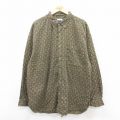 XL★古着 長袖 シャツ メンズ 00年代 00s 総柄 大きいサイズ ロング丈 コットン ボタンダウン 濃緑他 グリーン 25jul02 中古 トップス