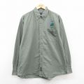 XL★古着 長袖 シャツ メンズ PARKS 大きいサイズ コットン ボタンダウン 濃緑 グリーン 25jul05 中古 トップス