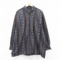 【商品名】 XL★古着 長袖 シャツ メンズ ペイズリー柄 大きいサイズ ロング丈 コットン ボタンダウン 紺他