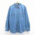 XL★古着 長袖 シャツ メンズ 大きいサイズ ロング丈 コットン 紺 デニム