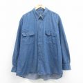 XL★古着 長袖 シャツ メンズ 大きいサイズ コットン ボタンダウン 紺 ネイビー デニム 25aug08 中古 トップス