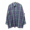 XL★古着 長袖 シャツ メンズ 90年代 90s 大きいサイズ ロング丈 紺他 ネイビー チェック 25aug20 中古 トップス