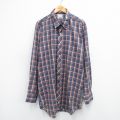 XL★古着 長袖 シャツ メンズ 90年代 90s ロング丈 紺他 ネイビー チェック 25aug25 中古 トップス