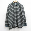 XL★古着 アロー 長袖 ポロ シャツ メンズ 大きいサイズ コットン 濃緑他 グリーン ボーダー 25aug25 中古 トップス