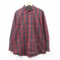 XL★古着 バンヒューセン 長袖 シャツ メンズ 90年代 90s エンジ他 チェック 25nov22