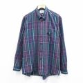 XL★古着 バンヒューセン 長袖 シャツ メンズ 90年代 90s ワンポイントロゴ コットン ボタンダウン 緑他 チェック 25dec09